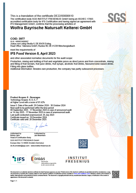 See here for an overview of the certifications of our 3 locations in Mönchengladbach, Vechta and Erding.